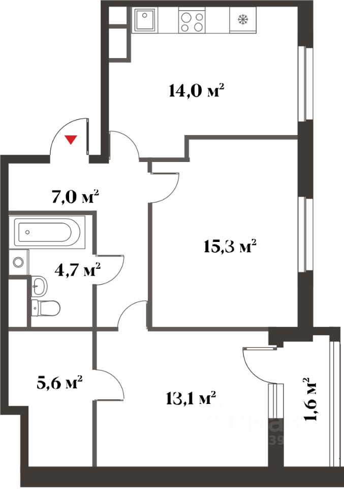 Общая площадь59,7 м²