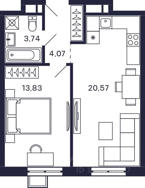 Продается квартира в ЖК Тетрис с 1 спальней на 20 этаже 28 этажного дома. Общая площадь: 44.1 кв.м. Высота потолков 2.95 м. Срок сдачи 2 квартал 2026 г. Эскроу-счет. Застройщик ГК "Садовое кольцо".