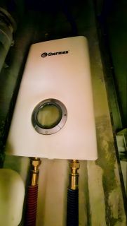 Санузел укомплектован современной сантехникой высокого класса: тропическим душем с терморегулятором, электрическим полотенцесушителем и удобным водонагревателем.