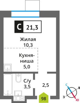 Продаётся студия в строящемся доме (поз. 5), срок сдачи: III-кв. 2027, общей площадью 21.3 кв.м., на 5 этаже. Новый жилой комплекс "Отрада. Никольский квартал" от застройщика "СЗ Отрада Вилладж" расположен по адресу: Россия, Московская область, Красногорск, коттеджный посёлок Никольский Парк, улица Александра Блока