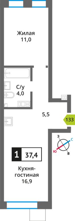 Продаётся 1-комнатная квартира в строящемся доме (поз. 4), срок сдачи: III-кв. 2027, общей площадью 37.4 кв.м., на 9 этаже. Новый жилой комплекс "Отрада. Никольский квартал" от застройщика "СЗ Отрада Вилладж" расположен по адресу: Россия, Московская область, Красногорск, коттеджный посёлок Никольский Парк, улица Александра Блока