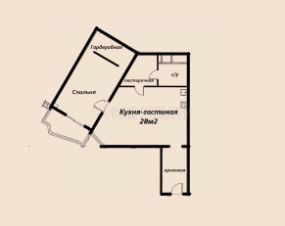 Великолепное планировочное решение для двоих людей или молодой семьи с одним ребенком.