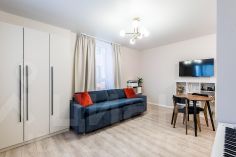 Квартира просторная, с очень удачной планировкой. Общая площадь 26.51 м2, комната 17,10 м 2, кухня-ниша 2,97м2, холл 3.38 м2, санузел совмещенный
