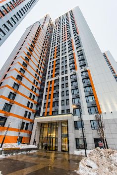 Новый современный высотный дом со скоростными лифтами и подземным паркингом, круглосуточная охрана. Двор без машин.