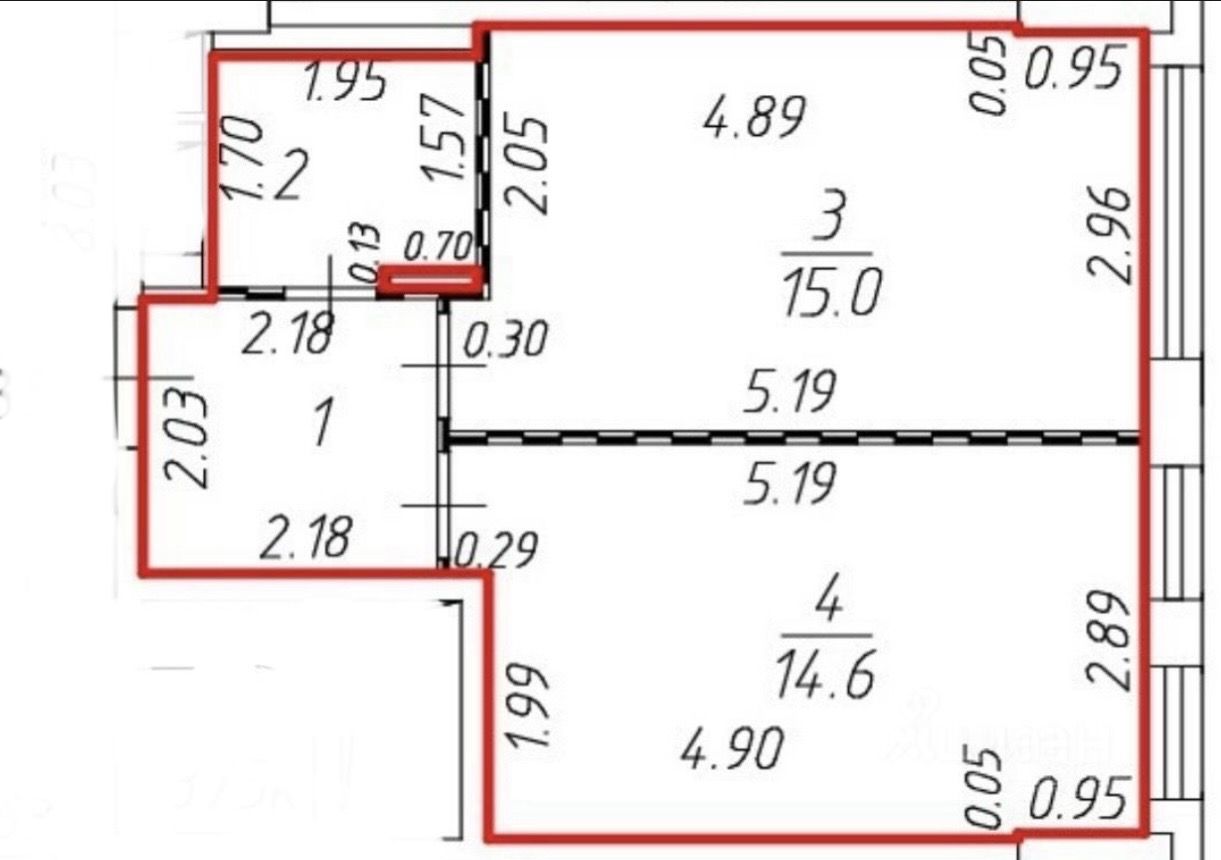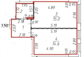 Общая площадь: 37,2 м2, Европланировка: кухня-гостиная 15 м2, спальня 14,6 м2, совмещенный санузел с ванной 3,3 м2, прихожая 4,4м2.