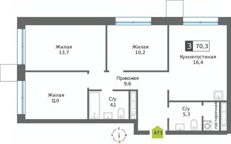 Трехкомнатная квартира евроформата с просторной кухней-гостиной и двумя санузлами в жилом комплексе бизнес-класса "Сити квартал Отрада". Планировка квартиры выполнена по современным стандартам и отличается повышенным комфортом.