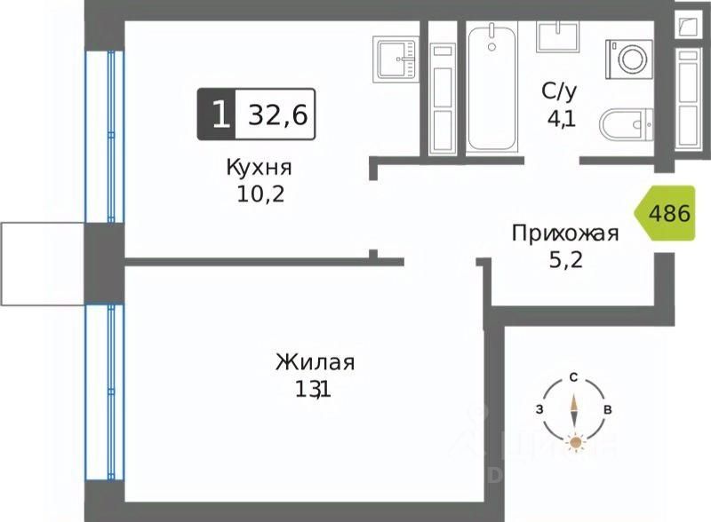 Общая площадь32,6 м²