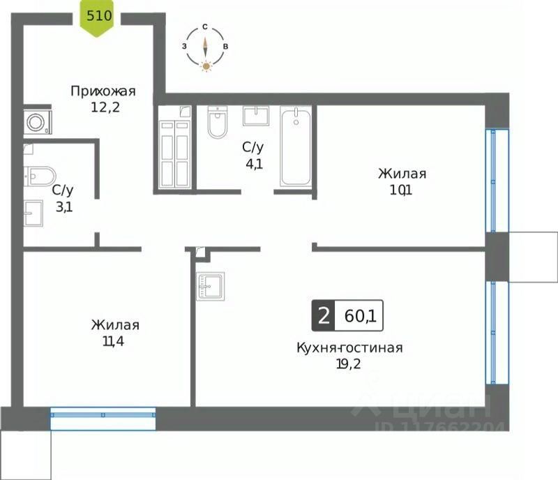 Общая площадь60,1 м²