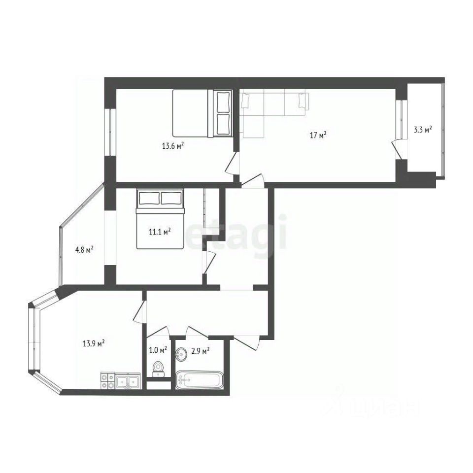 ***В продаже 3-х комнатная квартира общей площадью 73,9кв.м. ***