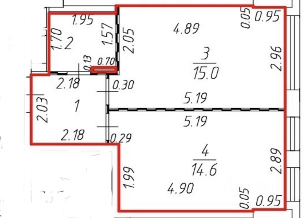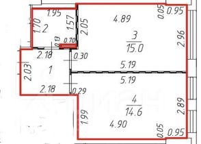 Общая площадь: 37,2 м2, Европланировка: кухня-гостиная 15 м2, спальня 14,6 м2, совмещенный санузел с ванной 3,3 м2, прихожая 4,4м2.