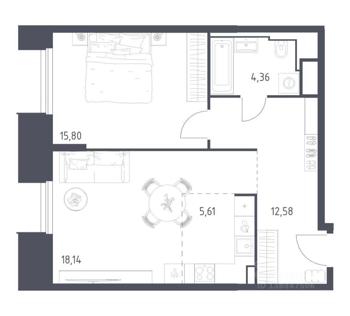 Строим кварталы для жизни с заботой о будущем. Предлагаются 1-комнатная квартира бизнес-класса площадью 56,49 кв.м в корпусе 19 на 25-м этаже, в жилом комплексе "Скай Спутник".