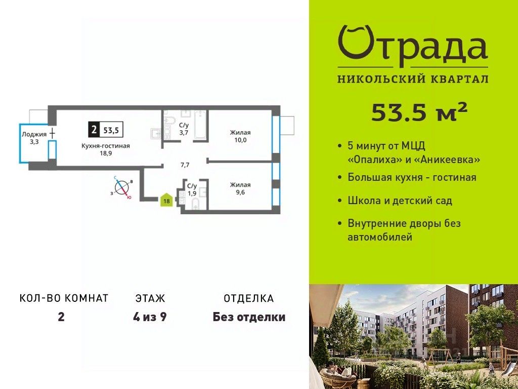 Двухкомнатная квартира (евротрешка) с просторной кухней-гостиной в жилом комплексе комфорт-класса "Никольский квартал Отрада". Планировка выполнена по современным стандартам и отличается повышенным комфортом. Квартал расположен в удачной локации, которая сочетает благоприятную экологическую обстановку с прекрасной транспортной доступностью. Проектом предусмотрены 14 корпусов высотой 6-9 этажей, а также муниципальная школа, один муниципальный и один частный детский сад, два наземных многоуровневых паркинга с кладовыми помещениями. Надежный застройщик ГК "Отрада" с высочайшим рейтингом 5 звезд от портала ЕРЗ. Все корпуса во всех ЖК сданы раньше срока!