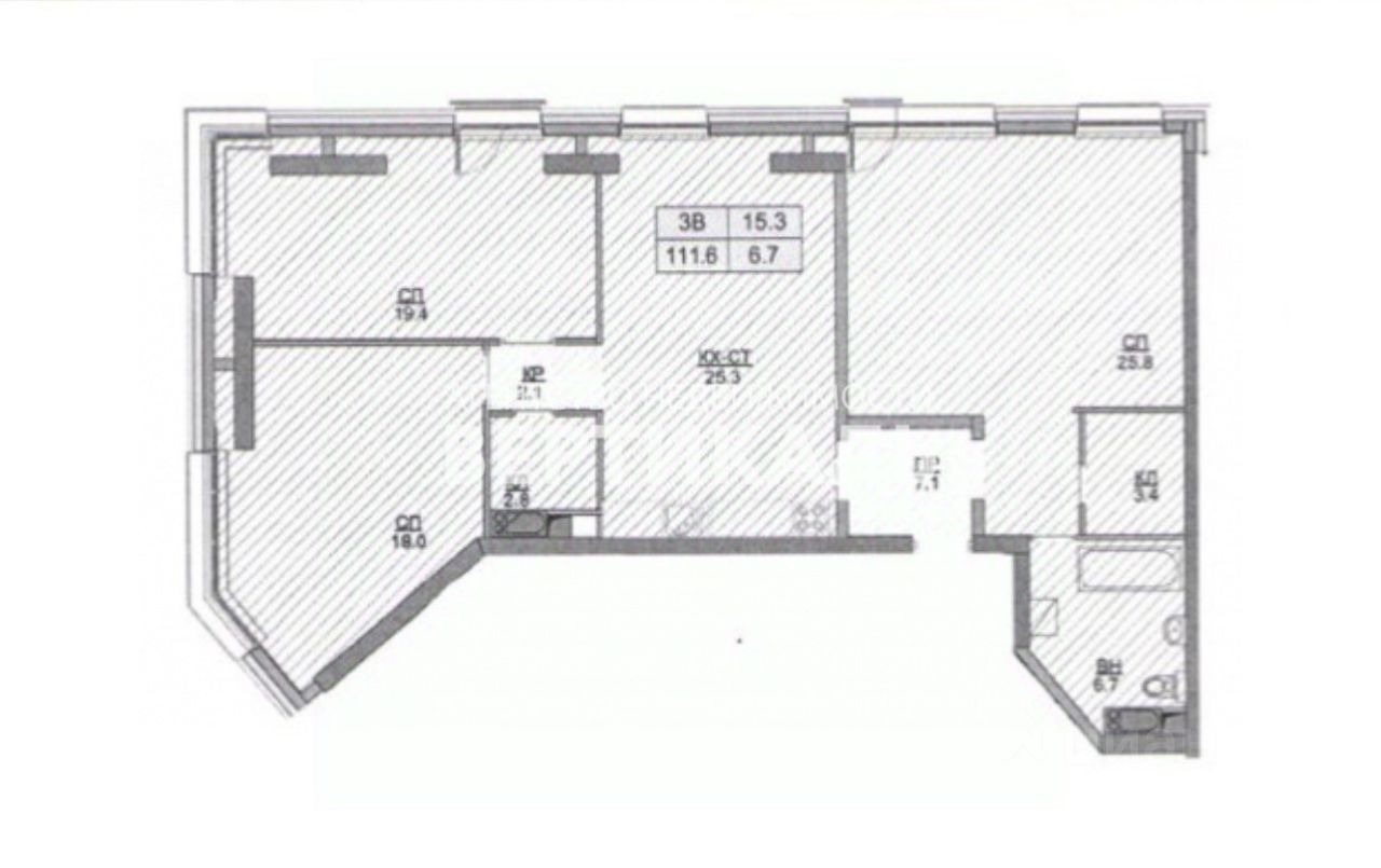 Планировка: кухня- гостиная, три жилые комнаты, два санузла.