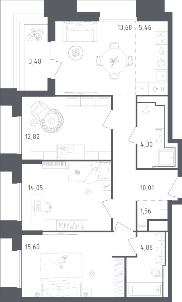 Продаются 3-комнатные апартаменты в строящемся доме (Корпус 20), срок сдачи: IV-кв. 2026, общей площадью 85.93 кв.м., на 20 этаже. Квартал для жизни "Спутник" обладает хорошей транспортной доступностью. В 1,7 км от него — станция метро "Строгино", в 3 км — "Мякинино". Он находится вблизи удобной транспортной развязки, и водители смогут использовать Новорижское и Мякининское шоссе. Также квартал имеет собственный выезд на МКАД.