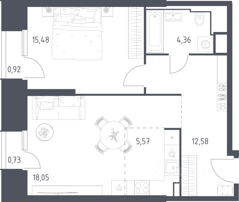 Продаются 1-комнатные апартаменты в строящемся доме (Корпус 19), срок сдачи: IV-кв. 2026, общей площадью 57.69 кв.м., на 4 этаже. Квартал для жизни "Спутник" обладает хорошей транспортной доступностью. В 1,7 км от него — станция метро "Строгино", в 3 км — "Мякинино". Он находится вблизи удобной транспортной развязки, и водители смогут использовать Новорижское и Мякининское шоссе. Также квартал имеет собственный выезд на МКАД.