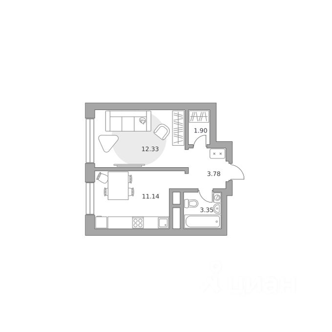 Продаётся 1-комнатная квартира 1796, площадью 32,50 м², на 19 этаже в ЖК "Ильинойс" корпус 3. Стоимость — от 9984340 руб. Квартира с отделкой, планировка односторонняя, окна на улицу.