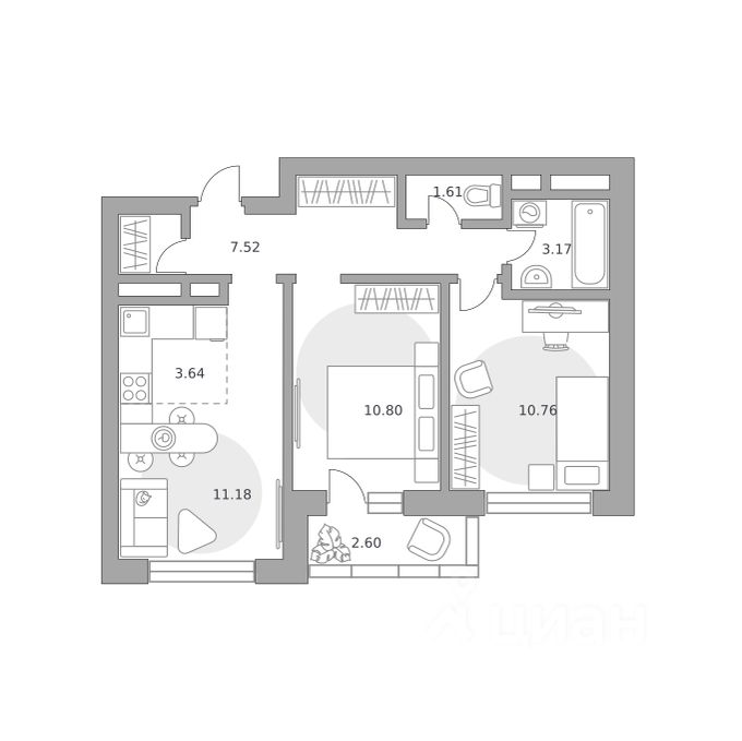 Продаётся 3-комнатная квартира 1638, площадью 52,79 м², на 7 этаже в ЖК "Ильинойс" корпус 3. Стоимость — от 15402816 руб. Квартира с отделкой, планировка односторонняя, окна на улицу.