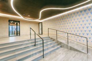 - на первых этажах кофейни, продуктовые магазины, Шоколадница и Мята, ДоДо и Здрасьте,- на любой вкус, цветочные магазины, аптеки, салоны красоты и стоматология.