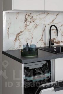 На кухне уже установлена вся необходимая техника, вплоть до посудомоечной машины, встроенного холодильника и микроволной печи.