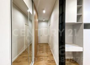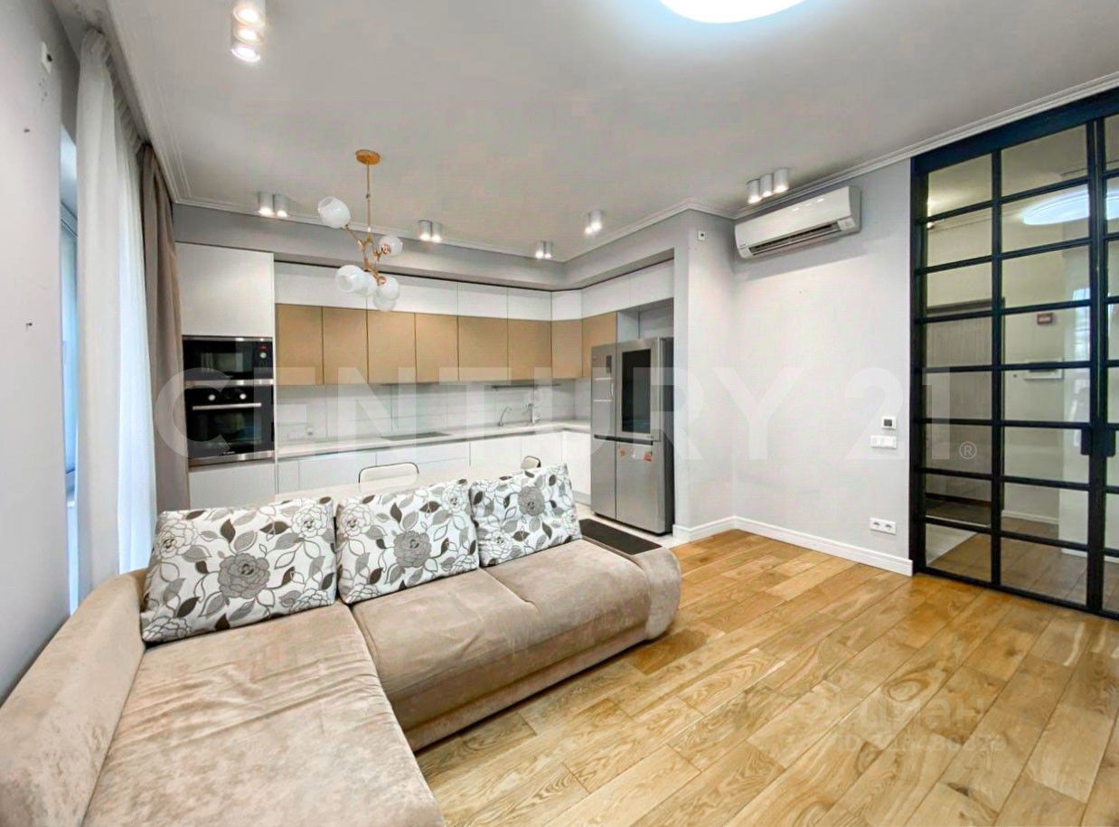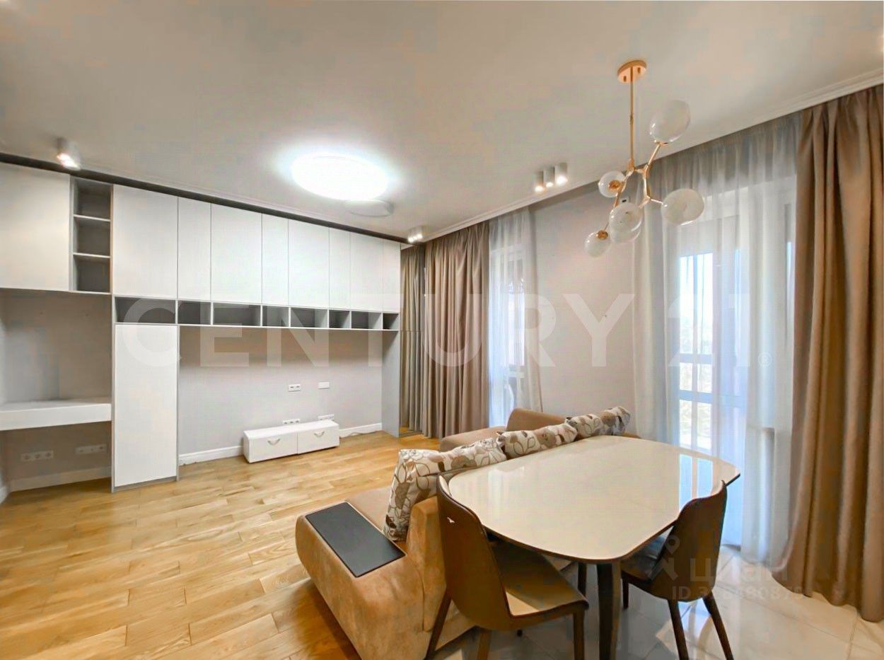 Просторная кухня-гостиная — сердце квартиры. Зона отдыха гармонично объединена с кухней и столовой, что идеально подходит как для повседневной жизни, так и для приёма гостей. Встроенная кухня с лаконичными фасадами и современной техникой органично вписывается в интерьер. Большие окна и текстиль в теплых оттенках делают пространство особенно уютным.Фирменная техника Bosch, кондиционеры фирмы Philips, холодильник LG.