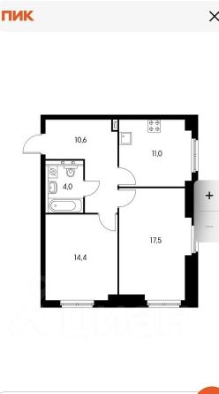 57,4 м²