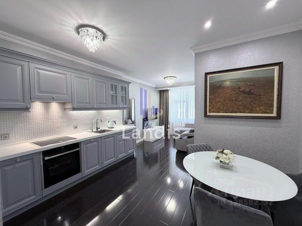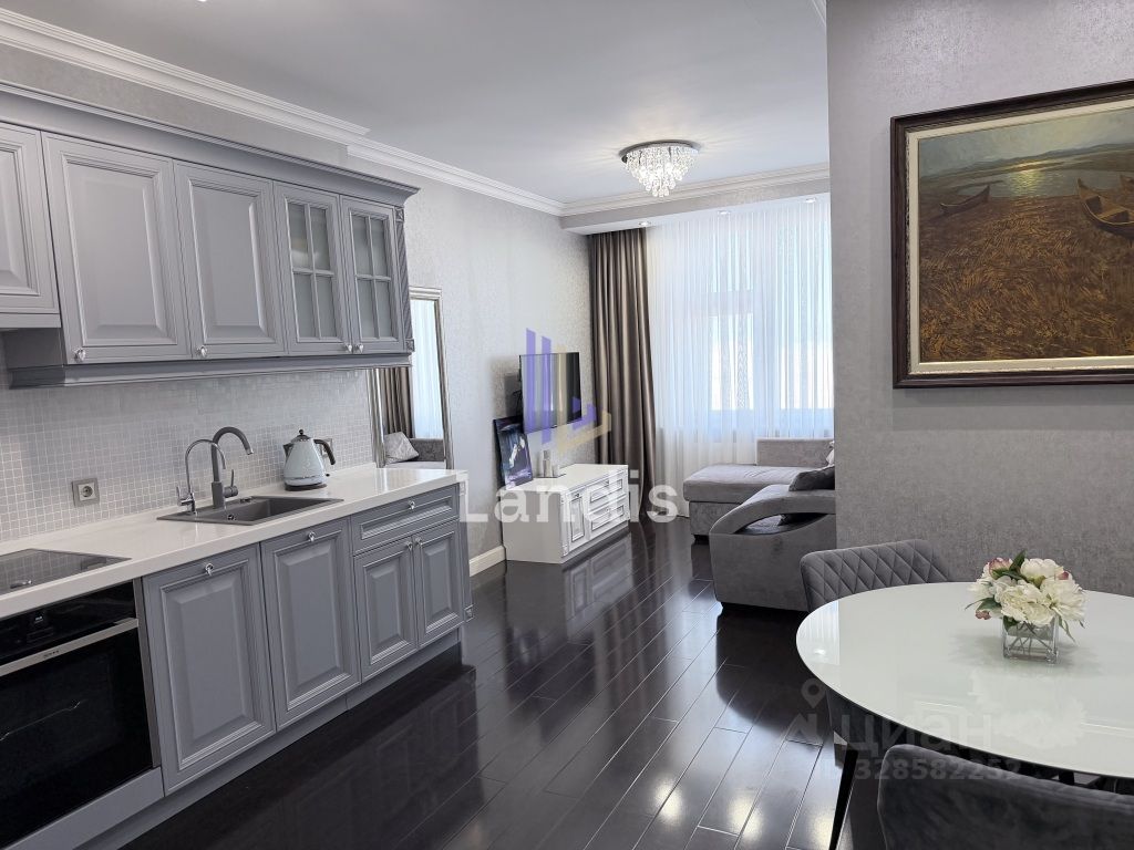 Кухня-гостиная, изолировнная спальня с вместительной гардеробной. Постирочная-гардеробная. В квартире выполнен дизайнерский ремонт, вся мебель изготовлена на заказ под квартиру, поэтому всё остается новому собственнику.