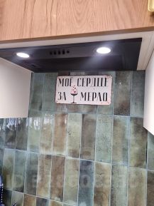 В кухне множество розеток, теплый пол, эркерное окно, новый радиатор, новый кухонный гарнитур со всей техникой остаётся в квартире (духовка, вытяжка, посудомоечная машина, телевизор, холодильник), высокие верхние шкафы, функциональная раковина с дозатором для жидкости для мытья посуды, излив для мытья стаканов, для мойки овощей и фруктов