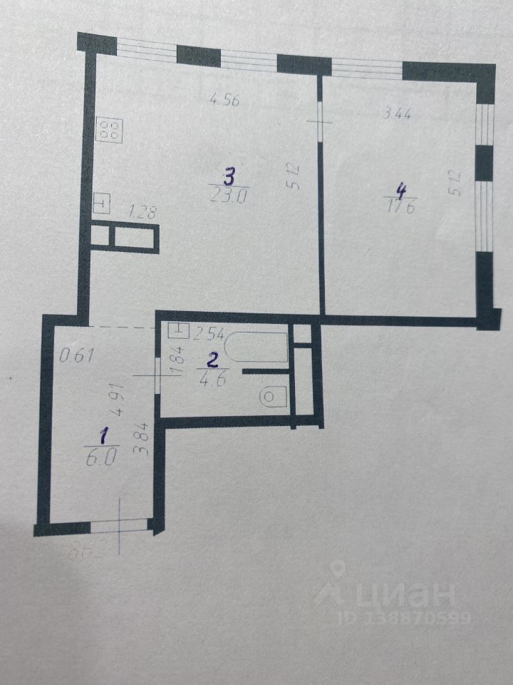 Квартира с отличной планировкой: большая кухня-гостиная 23 м и 17м спальня;