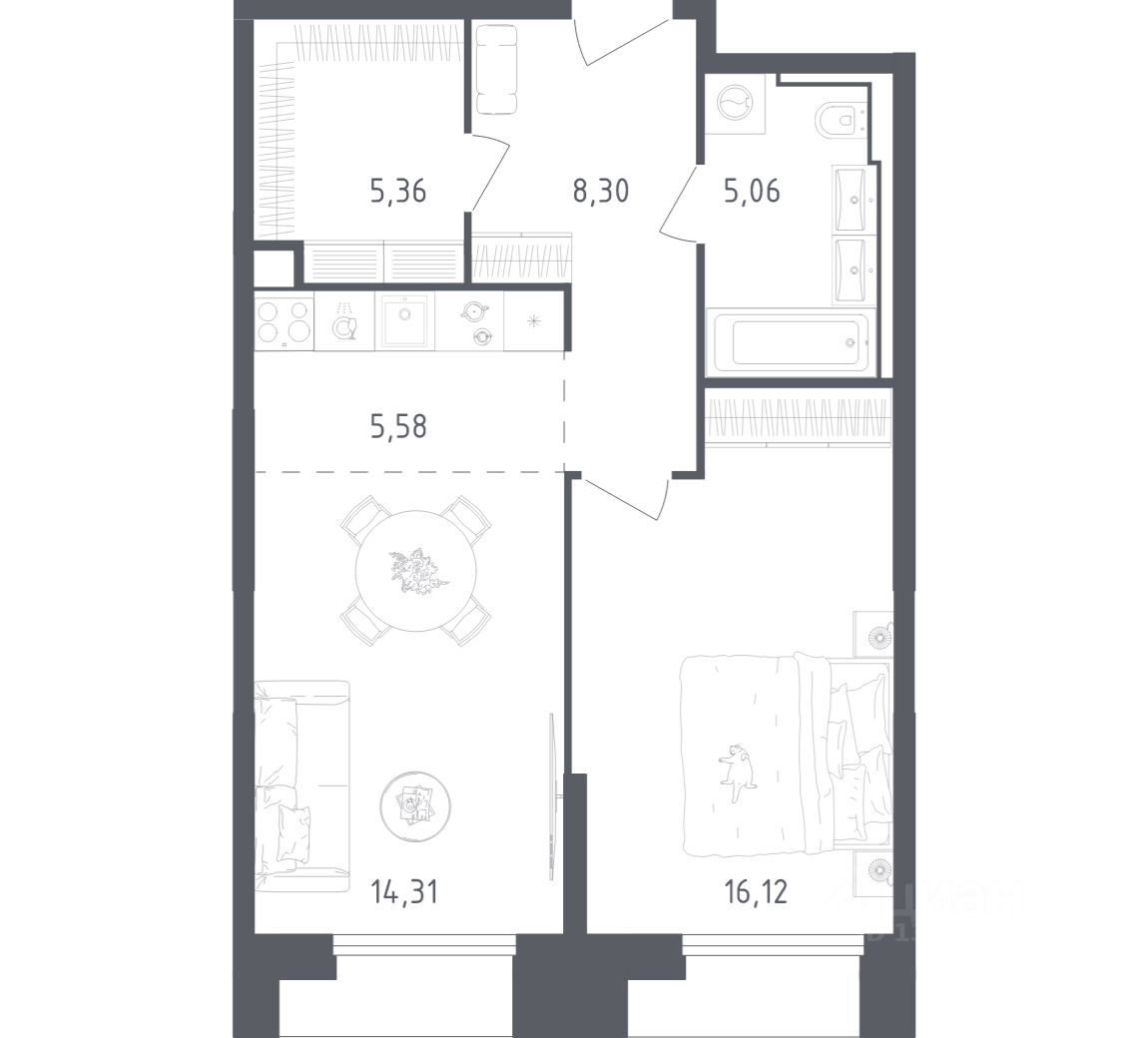 Строим кварталы для жизни с заботой о будущем. Предлагаются 1-комнатная квартира бизнес-класса площадью 54,73 кв.м в корпусе 20 на 9-м этаже, в жилом комплексе "Скай Спутник".
