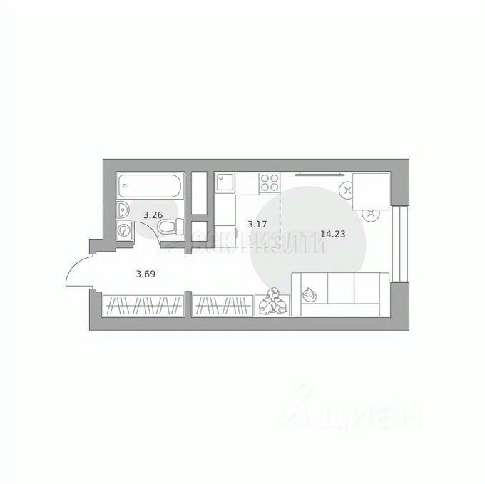 Общая площадь квартиры 24.4м2.