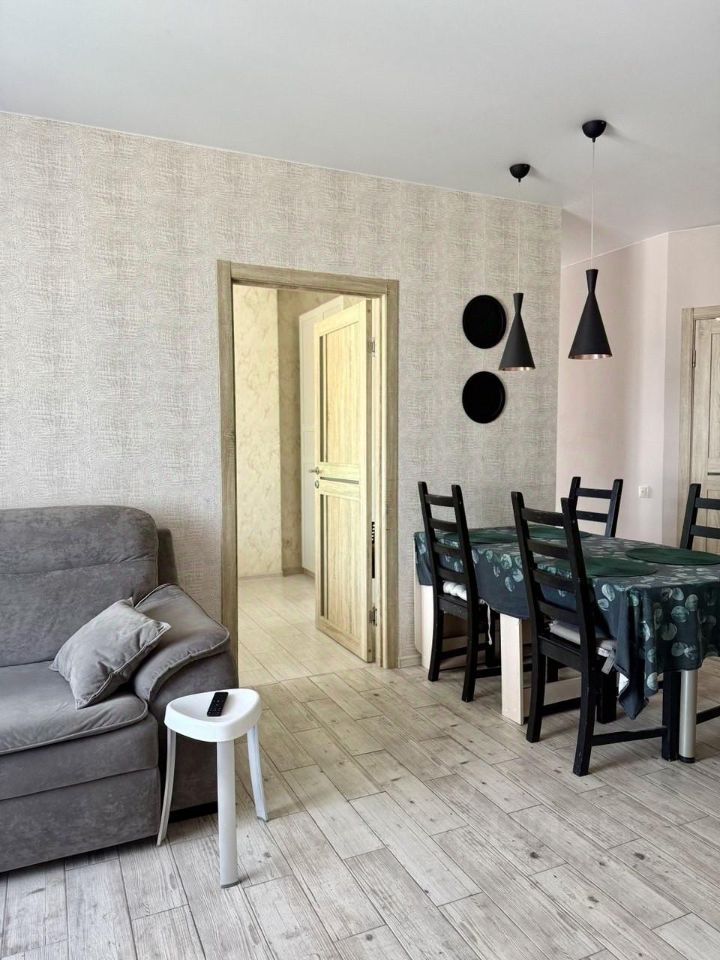 Эта светлая и уютная квартира станет идеальным местом для комфортной жизни. Удобные отдельные три спальни и большая кухня-гостиная, так же есть комната которую можно использовать для размещения гостей или как игровую. В первой спальне Вас ждет двуспальная кровать с ортопедическим матрасом для полноценного отдыха с большим вместительным шкаф-купе. другие две комната оборудованна под детскую, где предусмотрены спальные места, зона под обучение и хранение личных вещей.