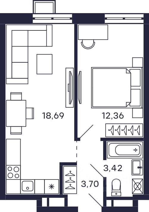 Приобретая эту квартиру, вы выбираете современное жильё в новом доме с отличной планировкой и возможностью наслаждаться прекрасными видами из окон высокого этажа.
