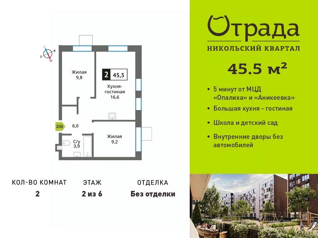 Двухкомнатная квартира (евротрешка) с просторной кухней-гостиной в жилом комплексе комфорт-класса "Никольский квартал Отрада". Планировка выполнена по современным стандартам и отличается повышенным комфортом. Квартал расположен в удачной локации, которая сочетает благоприятную экологическую обстановку с прекрасной транспортной доступностью. Проектом предусмотрены 14 корпусов высотой 6-9 этажей, а также муниципальная школа, один муниципальный и один частный детский сад, два наземных многоуровневых паркинга с кладовыми помещениями. Надежный застройщик ГК "Отрада" с высочайшим рейтингом 5 звезд от портала ЕРЗ. Все корпуса во всех ЖК сданы раньше срока!