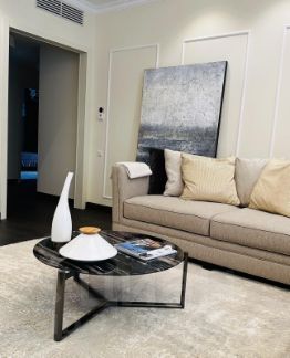 Предлагается роскошная 3 - х комнатная квартира с дизайнерским ремонтом, состоящая из кухни-столовой, гостиной, 2-х спален, также есть 2 гардеробных, построчная . Терраса. Дизайнерский ремонт сделан из дорогостоящих, импортных материалов,( мрамор ; половая доска) с мебелью именитых итальянских брендов: Техника Miele. B квартире никто не проживал. В квартире есть все для комфортного проживания - центральное кондиционирование, увлажнитель воздуха обогреватель воды. Панорамные окна и терраса придают квартире особенную атмосферу единения с природой, и ощущение загорода.