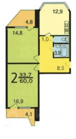 Жилая площадь33,7 м²