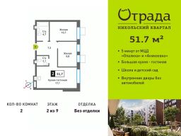 Двухкомнатная квартира (евротрешка) с просторной кухней-гостиной в жилом комплексе комфорт-класса "Никольский квартал Отрада". Планировка выполнена по современным стандартам и отличается повышенным комфортом. Квартал расположен в удачной локации, которая сочетает благоприятную экологическую обстановку с прекрасной транспортной доступностью. Проектом предусмотрены 14 корпусов высотой 6-9 этажей, а также муниципальная школа, один муниципальный и один частный детский сад, два наземных многоуровневых паркинга с кладовыми помещениями. Надежный застройщик ГК "Отрада" с высочайшим рейтингом 5 звезд от портала ЕРЗ. Все корпуса во всех ЖК сданы раньше срока!