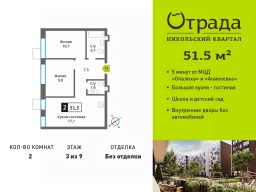 Двухкомнатная квартира (евротрешка) с просторной кухней-гостиной Двухкомнатная квартира (евротрешка) с просторной кухней-гостиной в жилом комплексе комфорт-класса "Никольский квартал Отрада". Планировка выполнена по современным стандартам и отличается повышенным комфортом. Квартал расположен в удачной локации, которая сочетает благоприятную экологическую обстановку с прекрасной транспортной доступностью. Проектом предусмотрены 14 корпусов высотой 6-9 этажей, а также муниципальная школа, один муниципальный и один частный детский сад, два наземных многоуровневых паркинга с кладовыми помещениями. Надежный застройщик ГК "Отрада" с высочайшим рейтингом 5 звезд от портала ЕРЗ. Все корпуса во всех ЖК сданы раньше срока!