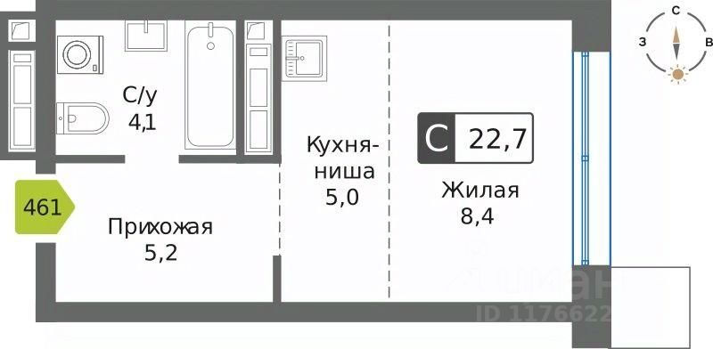 Квартира-студия с компактной кухней-нишей в жилом комплексе бизнес-класса Сити квартал Отрада. Планировка квартиры выполнена по современным стандартам и отличается повышенным комфортом.