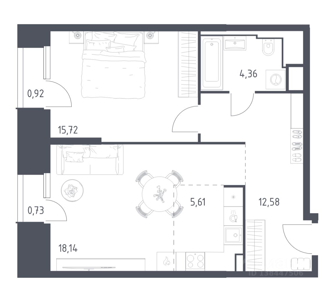 Строим кварталы для жизни с заботой о будущем. Предлагаются 1-комнатная квартира бизнес-класса площадью 58,06 кв.м в корпусе 19 на 12-м этаже, в жилом комплексе "Скай Спутник".