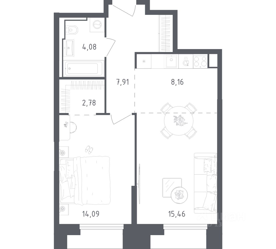 Строим кварталы для жизни с заботой о будущем. Предлагаются 1-комнатная квартира бизнес-класса площадью 52,48 кв.м в корпусе 20 на 16-м этаже, в жилом комплексе "Скай Спутник".