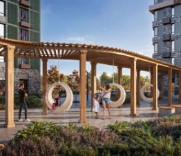 На территории будет вся необходимая инфраструктура для комфортного проживания: коммерческие помещения на первых этажах, собственные детские сады и школа, спортивные и детские площадки с продуманным озеленением, зоны тихого отдыха, пешеходный бульвар и велодорожки.