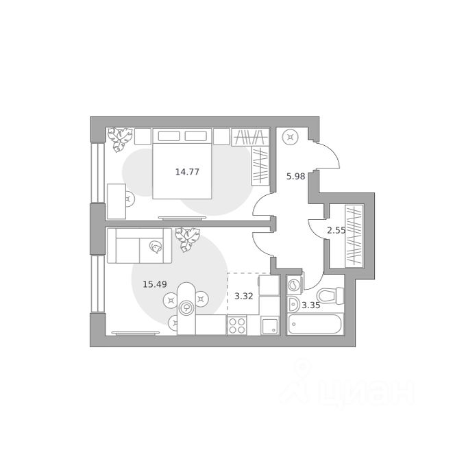 Продаётся 2-комнатная квартира 208, площадью 45,46 м², на 5 этаже в ЖК "Ильинойс" корпус 3. Стоимость — от 12955038 руб. Квартира с отделкой, планировка односторонняя, окна на улицу.