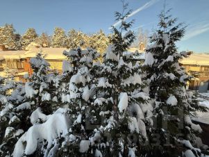 Живая изгородь из крупных туй по периметру участка, водоотведение, освещение.