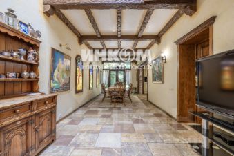 В доме просторный подвал с холлом, подсобным и техническим помещениями, постирочной; на первом этаже прихожая, холл, бильярдная, санузел, лестница на второй этаж, бассейн, комната отдыха, душевая, сауна, кухня, гостиная, гардеробная, несколько санузлов и жилых комнат; второй этаж включает холл, несколько санузлов и комнат, две гардеробные и балкон; на мансарде расположены две уютные комнаты и санузел. Так же есть отдельный дом для хоз. работников общей площадью 251,5 кв.м..