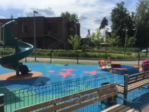 Элитный закрытый комплекс с круглосуточной охраной, теннисным кортом, футбольным полем, спортплощадкой и частным детским садом.