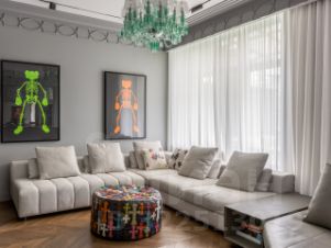 * Просторная гостиная с дизайнерской кухней, с техникой Neff премиум-класса