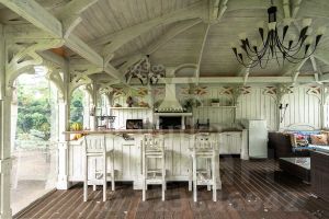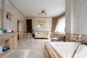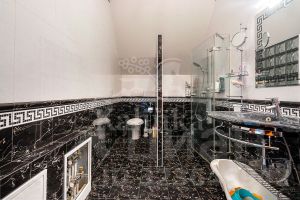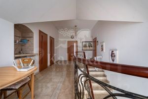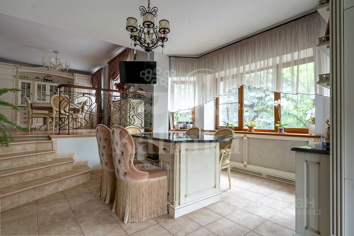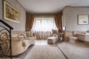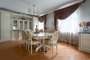 Уникальность дома заключается в том, что у него есть собственный выход к реке Москва с пирсом. Дом полностью меблирован, оборудован всей необходимой техникой и готов к проживанию. Интерьер выполнен в классическом стиле. Планировка дома тщательно продумана. Большие окна открывают прекрасные виды на Живописную бухту. Помещения просторные и светлые. Есть отдельный блок для персонала с собственным входом. Гараж рассчитан на 3 машины (90 м²).