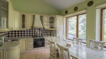 Кирпичный дом площадью 400 кв.м. на первой береговой линии Москвы-реки в элитном охраняемом поселке Береста. Участок 30 соток с возможностью организовать собственный причал, свободен для воплощения любых идей ландшафтного дизайнера. На придомовом участке выполнен качественный ландшафтный дизайн, растет более 100 взрослых деревьев и кустарников: кедры, ели, сосны, березы, орешники и виноград. Предусмотрен гараж на 1 автомобиль, также есть квартира для персонала.