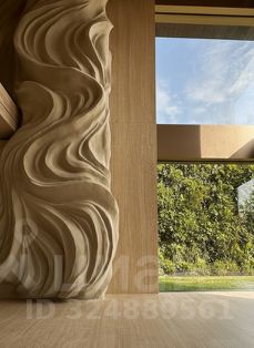 В отделке использованы камень, дерево, премиальные материалы и нейтральная светлая палитра. Большие окна и спокойные пропорции создают простор и наполнение светом.