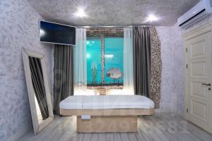 - SPA И РЕЛАКС: Отдельный банный комплекс, глубокий бассейн с гротом, массажный кабинет, соляная комната, различные зоны отдыха.